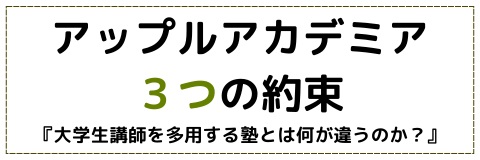 アップルアカデミアは進学塾として、志望校に合格することはとても大切な事だと考えています。 「楽しんで勉強できたから結果はいいじゃないか」とは考えて欲しくないのです。 むしろ、本当に結果を出すために「楽しんで勉強する」ことが最良で最短の道だという事実を一人でも多くの受験生に体験してもらいたいと考えています。そして間違った思考で勉強することで、頑張っているのに成果を出せず自信を失ったり、自分の可能性を信じられなくなってしまう受験生を一人でも減らしたいと願っています。