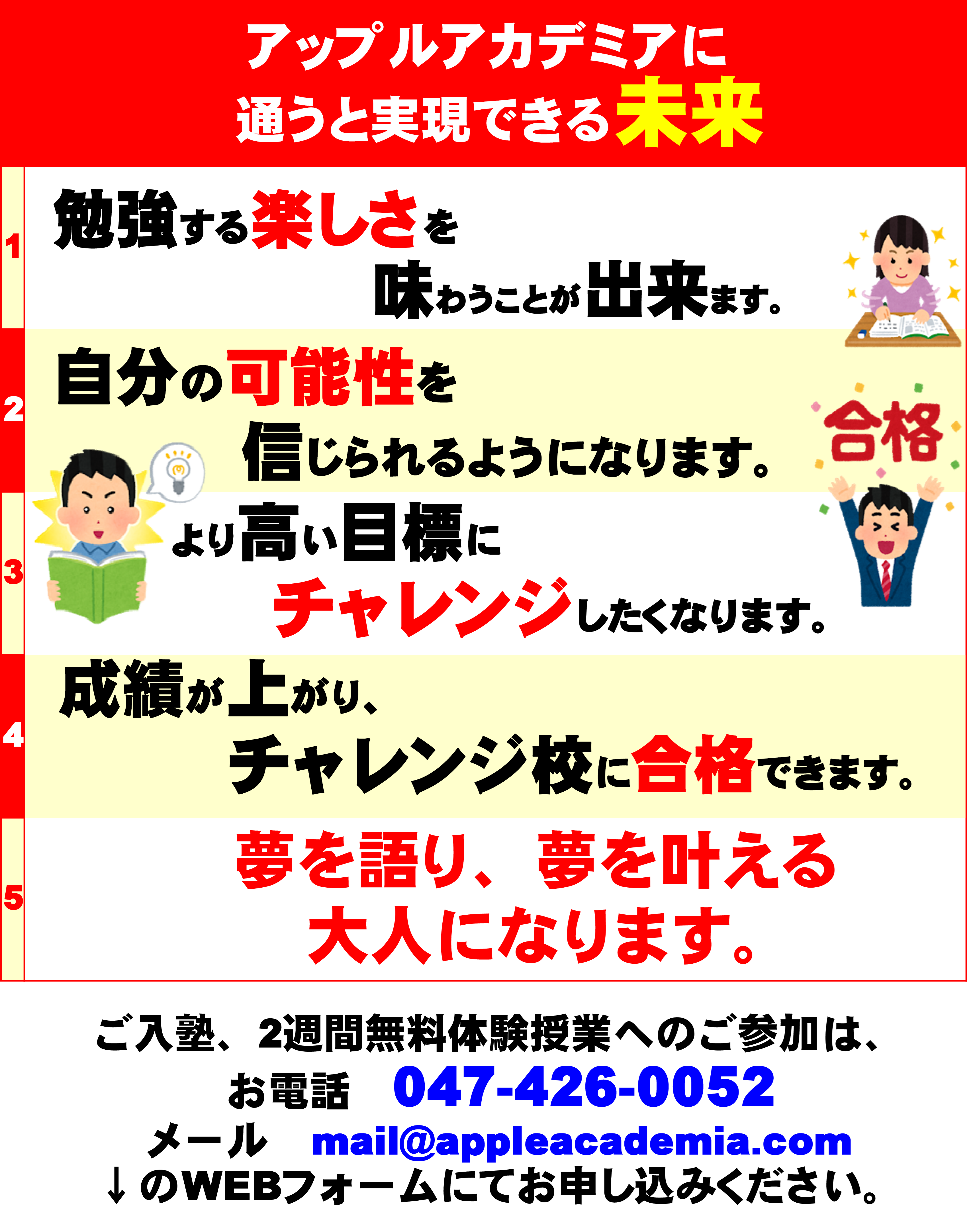 アップルに通う生徒さん、保護者様の声&合格実績